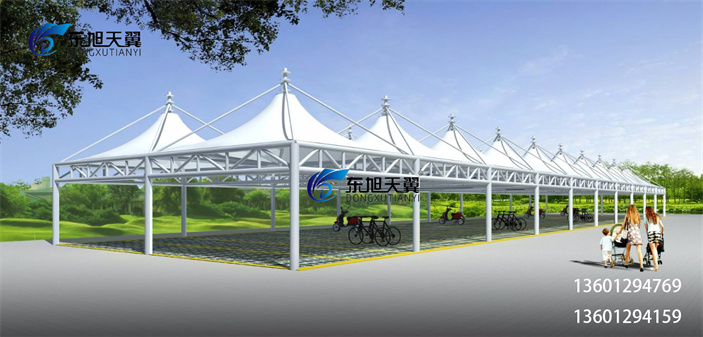 膜结构车棚优点:遮阳、防雨、抗风、防尘,坚固安全、美观耐用;