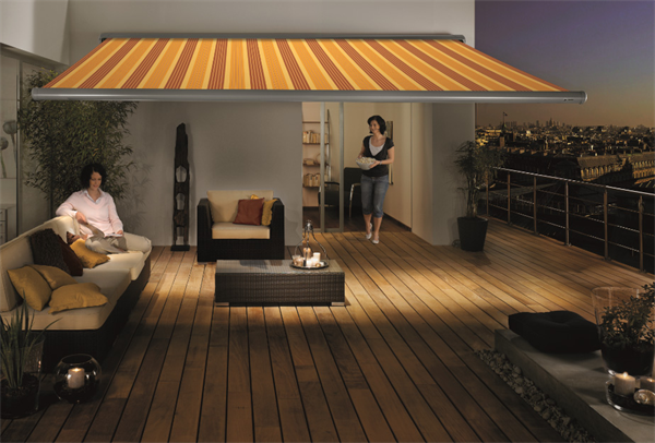 曲臂遮阳篷具有全面的外遮阳功能,能够彻底阻挡紫外线的辐射,降低室内温度,减少空调负荷,能够使强烈的阳光以漫射光的形式反射入室内,使室内光线明亮而不眩目,并且不影响从室内看出的窗外景观,将人们的生活空间从室内延伸到室外,创造出了新的居住空间。不仅使人体皮肤免受紫外线的侵袭,而且大大延长了室内装修和家具的使用寿命,遮阳篷有着丰富多彩的遮阳面料颜色,用户可根据需要选择。